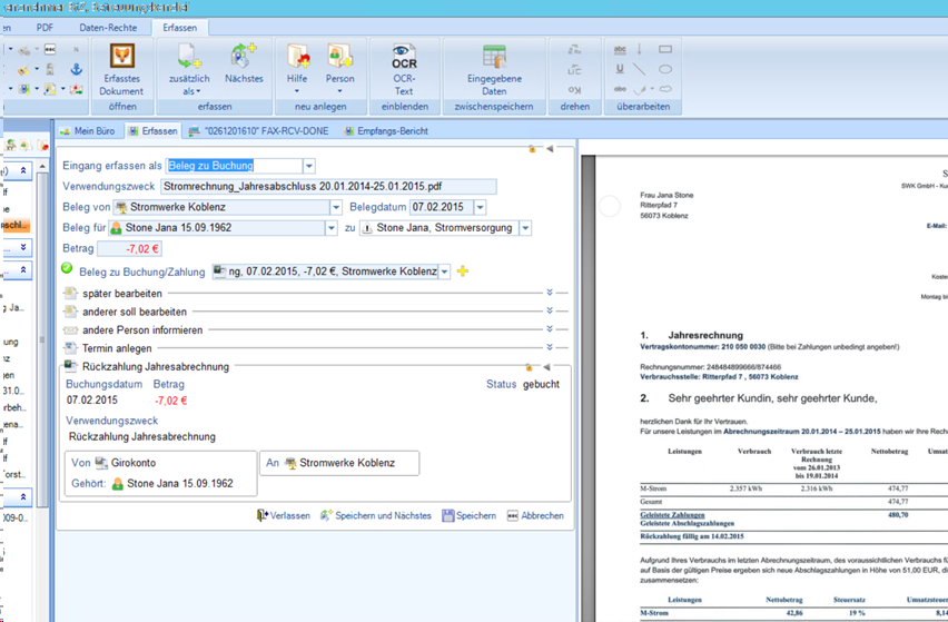 Im nächsten Schritt hilft Ihnen butler dabei, die gescannten Belege zu erfassen. Und zwar nicht irgendwie, sondern komfortabel und mit System: Ihr butler "liest" mit und füllt viele Felder schon automatisch aus. So können Sie die Belege bequem den jeweiligen Konten und Buchungen zuordnen. Oft hat butler die passenden "Gegenstücke" schon parat.